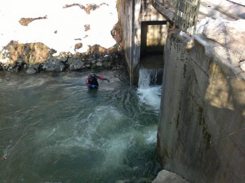 Im Bereich der Schneeabwurframpe beim Kraftwerk "Kunstmühle" in Bad Goisern, löste sich beim Abkippen des Schnees die Ladebordwand eines LKW und fiel mit der Schneeladung in den Auslaufbereich des Kraftwerks. Der Vorfall ereignete sich am Mittwoch, 29.02.2012. Am Freitag, 02.03.2012 wurde die Bordwand durch zwei Taucher der Oberösterreichischen Wasserrettung von der Ortsstelle Bad Goisern lokalisiert und für die Bergung durch einen LKW-Kran vorbereitet. [Weiterlesen] | ![]() |