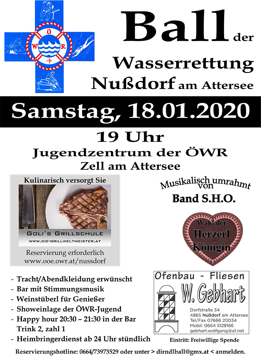 Hier findest du die Daten zum diesjährigen Wasserrettungsball im ÖWR Jugendzentrum in Zell am Attersee.